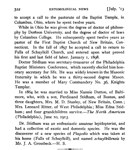 | 19 |  |   | no_name_listed | Col: Isaac F. Stidham | Year: 1907-1910? | Locale: Philadelphia PA ? | other remarks: See Ent. News XXiV p.321 | |