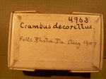 | 72 |  |   | Crambus decorellus | Col: Isaac F. Stidham | Year: 08/1907 | Locale: falls Philadelphia PA | other remarks: See ent. News XXiV P. 321 | |